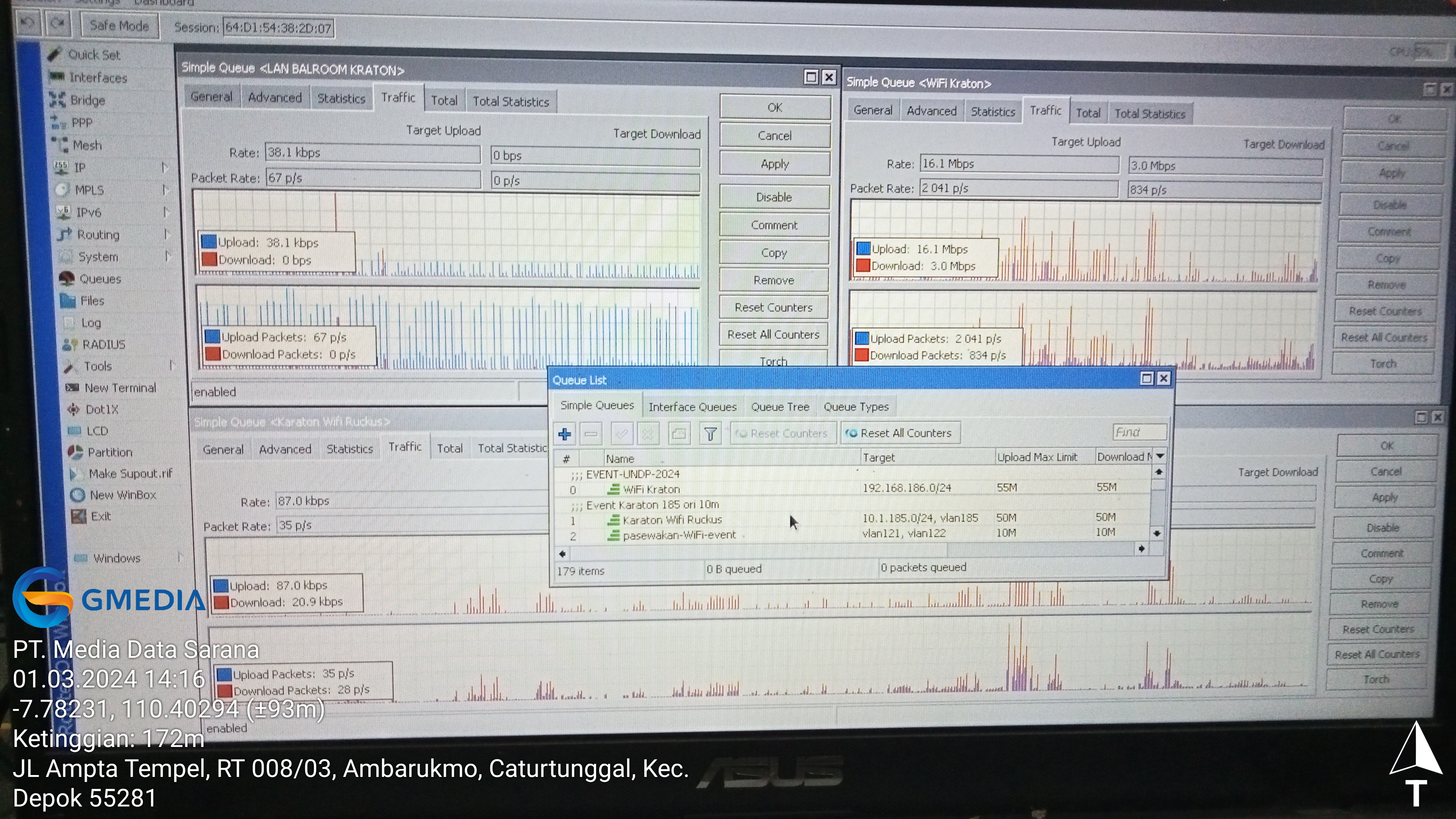 - MikroTik Routers (Queue Tree + Winbox monitoring)