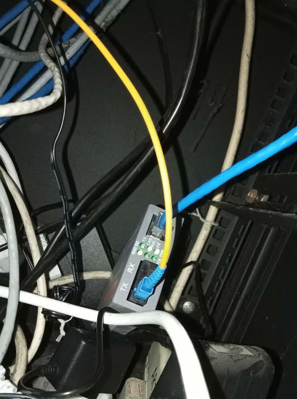 - Pulled single-mode fiber optic between the two buildings.